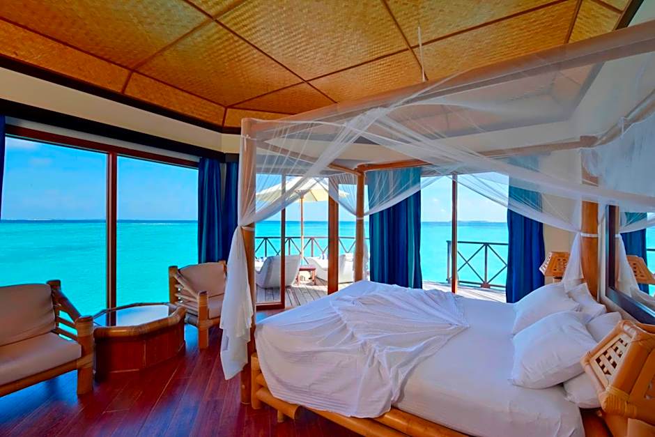 Spa/Wellness packages are available, and snorkeling or water sports facilities on site carry extra charges. Shuttle services and airport shuttle incur additional fees as well. Addressing shoreline access, there is private entrance and beachfront access with a terrace and patio, all situated in North Male' Atoll, Maldives.